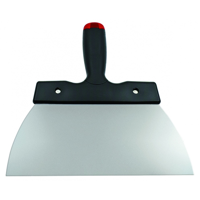 Stainless steel blade and polypropylene handle. Ideal for filling, scraping chocolate or candy moulds.