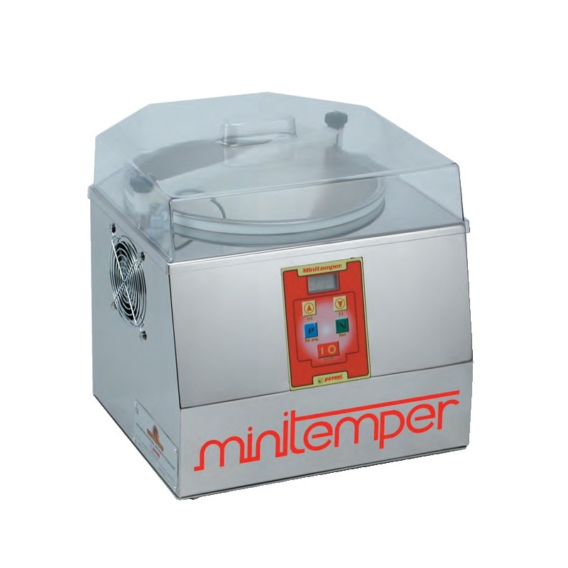 Even if small, Minitemper is a real tempering unit for chocolate; the sole difference in comparison to larger tempering unit is the cold air cooling system,used instead of cold water. It tempers also a small quantity of chocolate; it is suitable also for icing where the use of a small quantity of ingredients would not justify the use of a big tempering unit. Interchangeable bowls allow a quick change of different flavours and colours of chocolate.Easy to use it will help you to work easily and precisely. Made in Italy